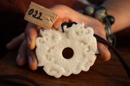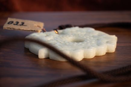 Старый предмет Ильи Бадурова .Как царь животных дракон служил символом императорской власти. Согласно китайскому преданию, Жёлтый император на исходе жизни обратился в дракона и взмыл в небеса. У настоящего императора должна быть родинка в форме дракона. Императорский трон многих династий назывался троном дракона. Во времена династии Цин китайский дракон украшал государственный стяг. За ношение одежды с фигурами дракона простолюдин подлежал смертной казни. Держащие в этом сюжете диск би (ритуальный диск времени) символизирует ощущение и следование потоку времени.